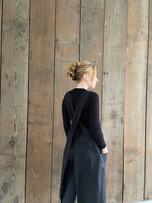 The Linen Japanese Cross Back Apron - Black